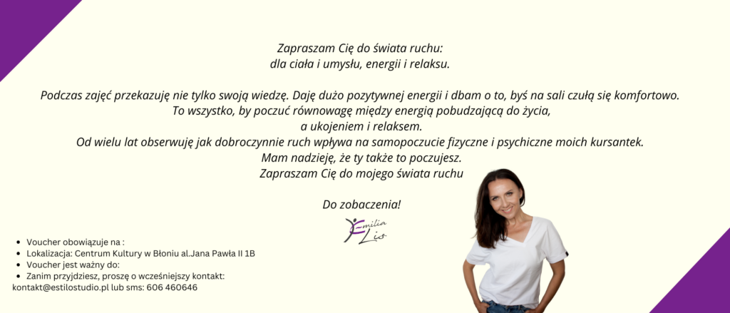 – Odbiór vouchera: osobiście do 18.12.2025 w Błoniu przed/po zajęciach wg grafiku